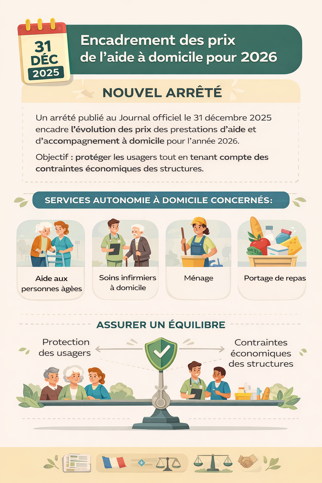 Aide à domicile : encadrement des prix en 2026, ce que prévoit l’arrêté du 23 décembre 2025